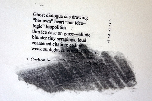 Hand bound pamphlet: carbon toner, printed on translucent paper; card covers. 15 x 21 cm.